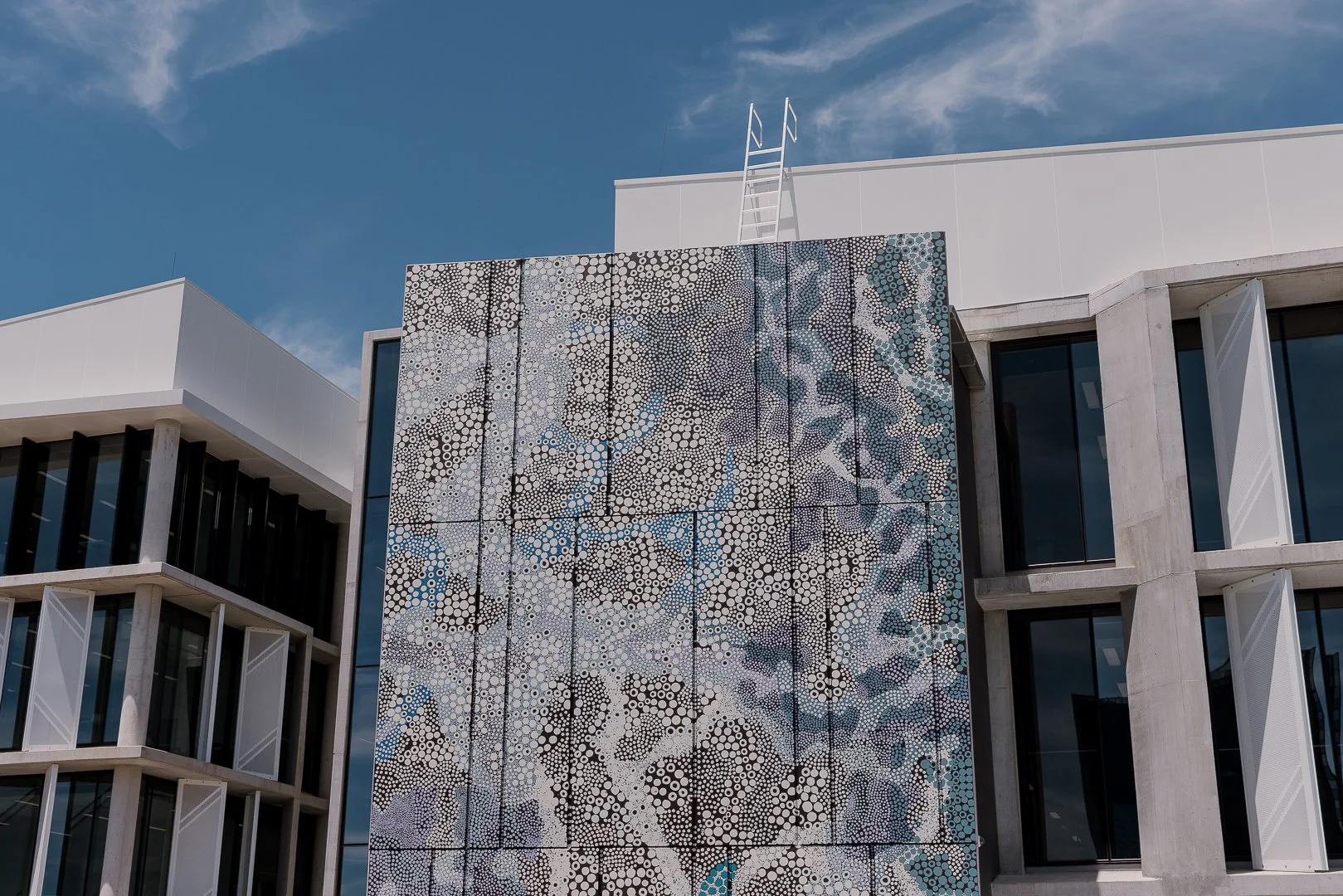 We share the latest work of Yuggera-Yugggerabul and Biri-Bindal artist Jody Rallah in collaboration with Creative Road and Five Mile Radius. The artwork is a site-specific façade that embodies Rallah’s commitment to reactivating First Nations knowledge spaces within urban contexts.