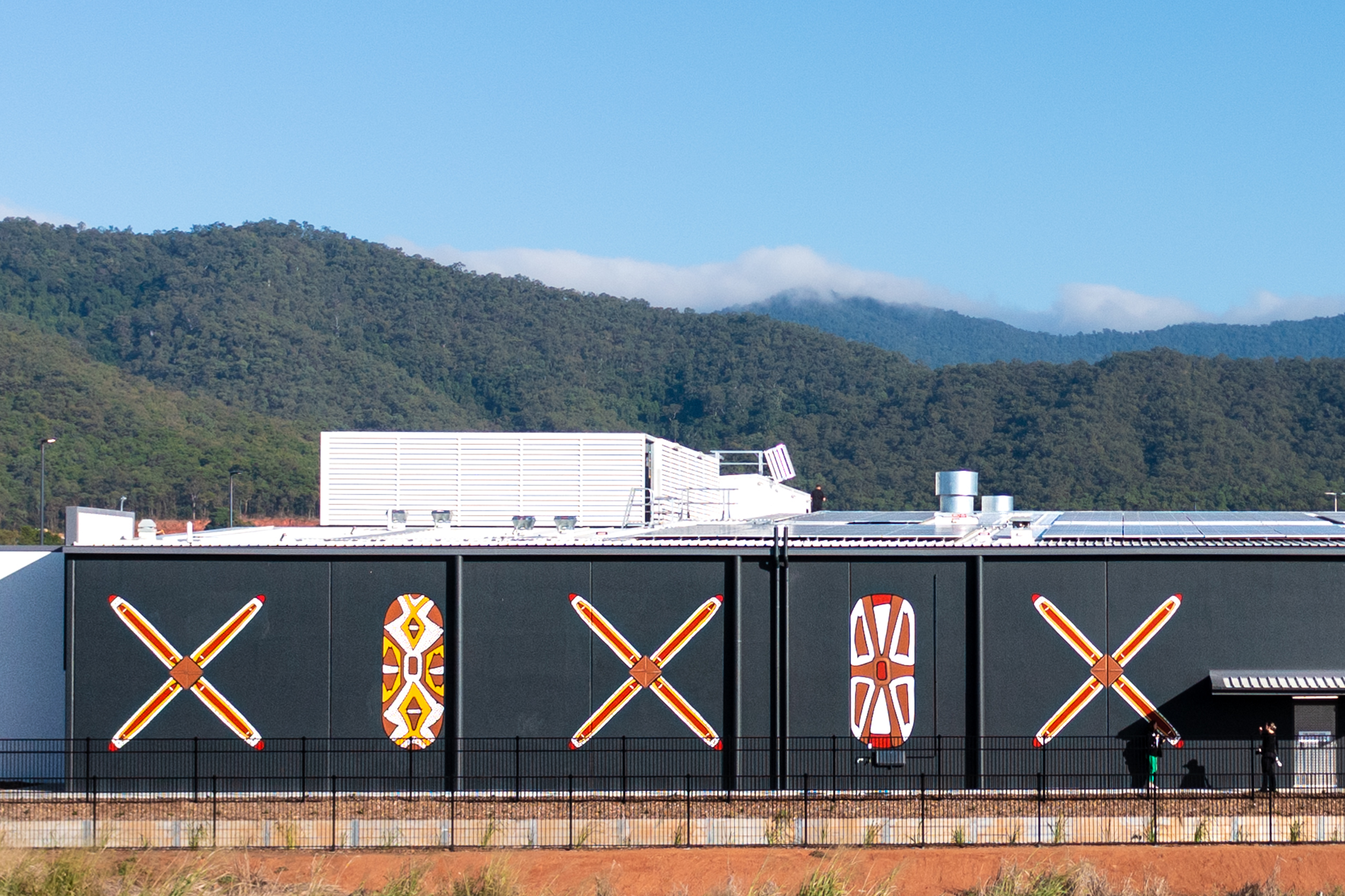 CREATIVE ROAD worked with renowned First Nations artist Michael Boiyool-Anning to present Yalma Bigoon, a large-scale exterior artwork for the façade of the new Gordonvale Shopping Centre. The development, on the outskirts of Cairns, is part of a broader plan of significant investment into Far North Queensland.